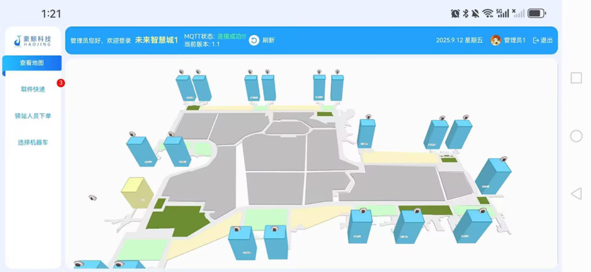 制作整个园区地图,园区的楼栋、道路、绿化带等空间构造体现在地图上。